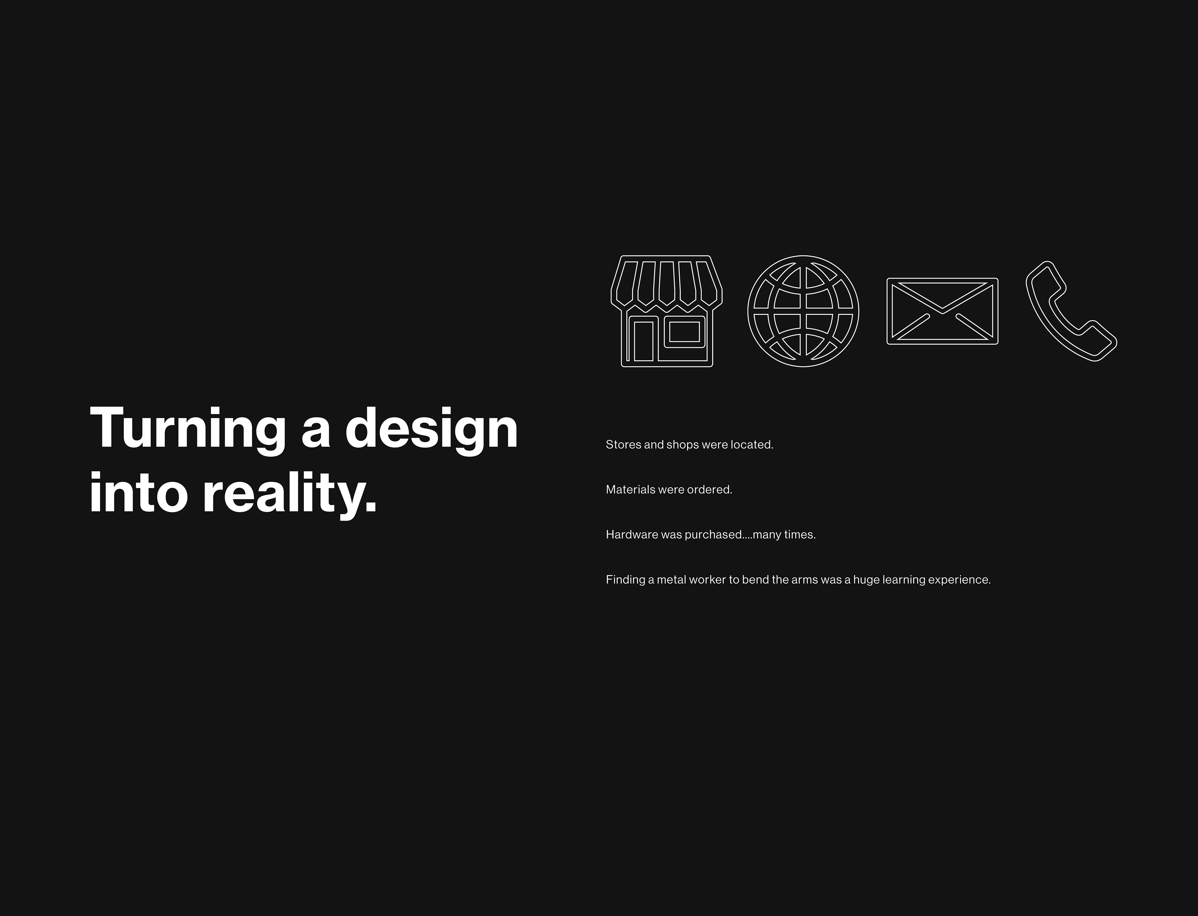 Special thanks goes out to Michael Fox (Fox's Upholstery Custer,WA), Scott Gallagher (Metalistics Everett,WA), and Lisa Collander (Industrial Designer & Technician WWU) who helped bring this concept into reality.